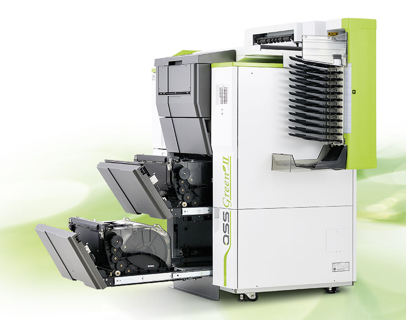 Sheet paper is available for duplex printing. Adapted to the output products, paper rolls and paper sheets are available in various paper thicknesses and surfaces. Tried-and-tested piezo-inkjet technology with “Dot Size Manipulation (DSM)“ is used as the printing system. It can vary every printing dot in 5 different sizes and can also include paper white as a “sixth option”.