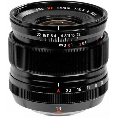 Fujinon XF 14mm f/2.8 R je širokougaoni bezogledalni objektiv sa specijalno odabranim rasponom objektiva od 14mm kako bi odgovarao vidnom polju optičkom tražilu modela X-Pro1 pri najširoj postavci od 0.37x. Ova karakteristika čini ga pravom zveri s obzirom na to da je jedan od nekoliko širokih objektiva specijalno dizajniranih za APS-C fotoaparate. Slovo R u njegovom nazivu znači da poseduje prsten kojim se kontroliše otvor blende. Fuji 14mm f/2.8 R se još odlikuje se uvećanjem od 0.12x, filterom veličine 58mm, kao i maksimalnim otvorom blende od 2.8.