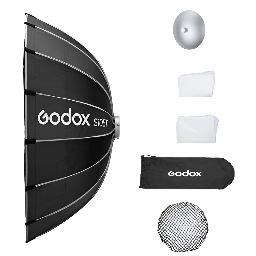 Godox S105T je parabolic softbox promjera 105 cm, idealan za stvaranje mekog, ravnomjernog i prirodnog svjetla. Zahvaljujući parabolicnom dizajnu omogućava bolju kontrolu kontrasta i usmjerenja svjetla, što ga čini odličnim izborom za portrete, modu i studijsku fotografiju. Kompatibilan je s rasvjetom s Bowens prihvatom.