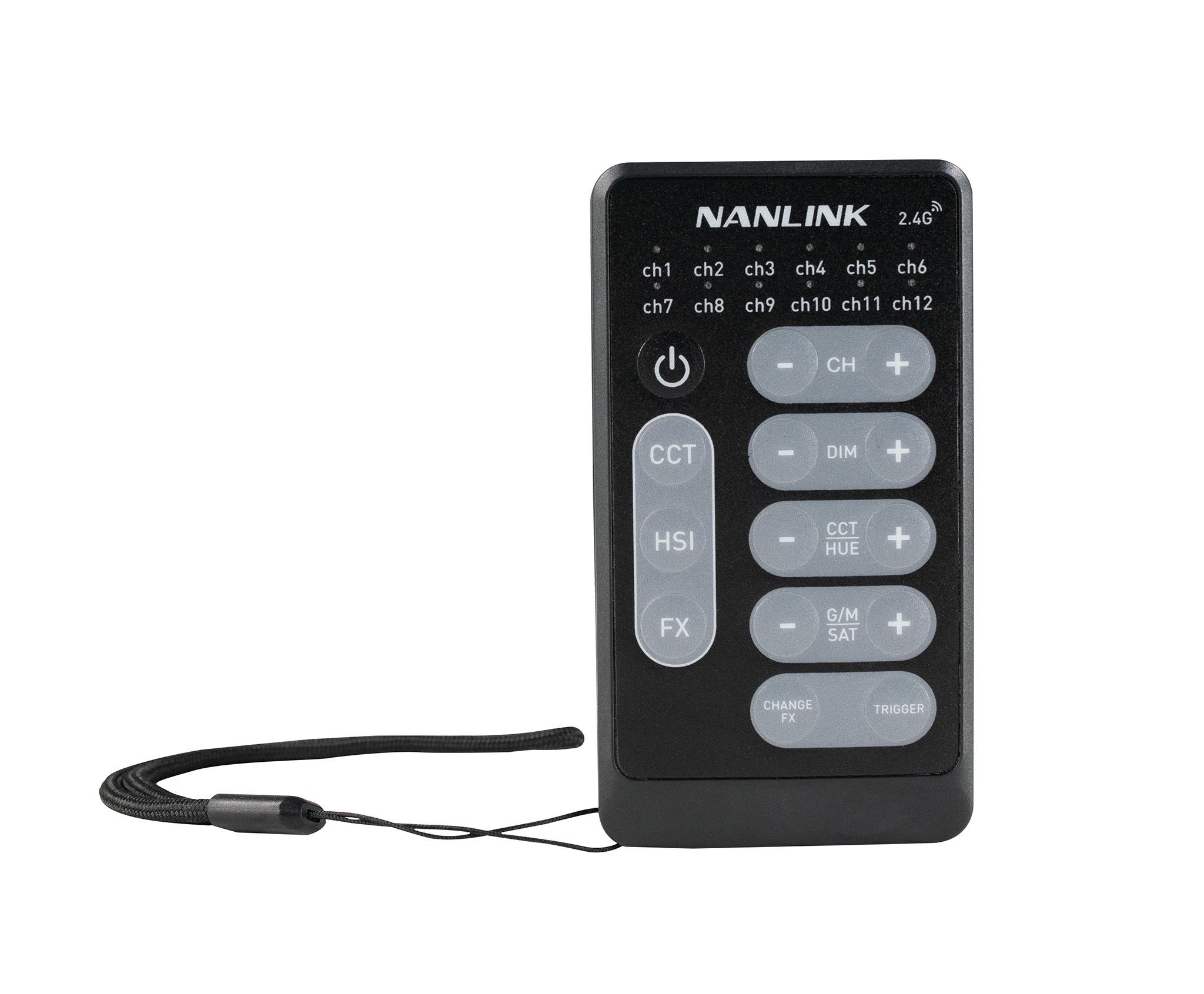 The Nanlink WS-RC-C2 2.4GHz Remote Control is a multi-function wireless controller that is designed for quick, simple setting adjustments wirerlessly. The remote controller can adjust the brightness, CCT, HUE and SAT settings of NANLITE and Nanlux lights equipped with built-in 2.4ghz receivers from up to 32ft (10m) away. Note: Wireless control of special effects may not be unavailable or require a firmware update, please refer to specific fixtures to check.