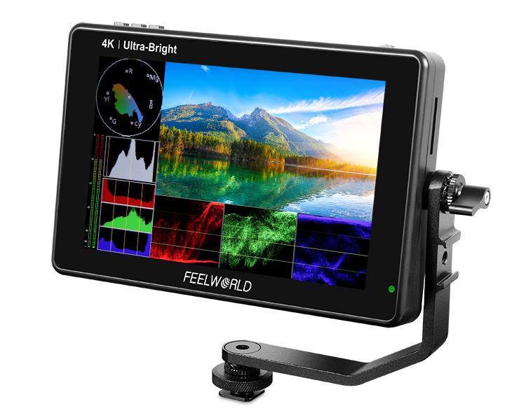 The LUT7S PRO 7" Ultra Bright HDMI/3G-SDI Field Monitor from FeelWorld features a sharp 323 ppi display and supports SD, HD, UHD, and DCI 4K video. This HDMI monitor has an integrated L-series battery slot and comes with a dummy battery plate that allows you to mount and power optional accessories, such as wireless transmitters or receivers with an L-series battery slot. The LCD panel boasts a 1920 x 1200 resolution, 16:10 aspect ratio, 1200:1 contrast ratio, and a 2200 cd/m² measured brightness for easy viewing outdoors as well as indoors. The touchscreen allows you to quickly access your settings, and the IPS LCD provides good off-axis viewing, allowing you to see the image without being directly in front of the monitor and not experiencing distorted colors or contrast.