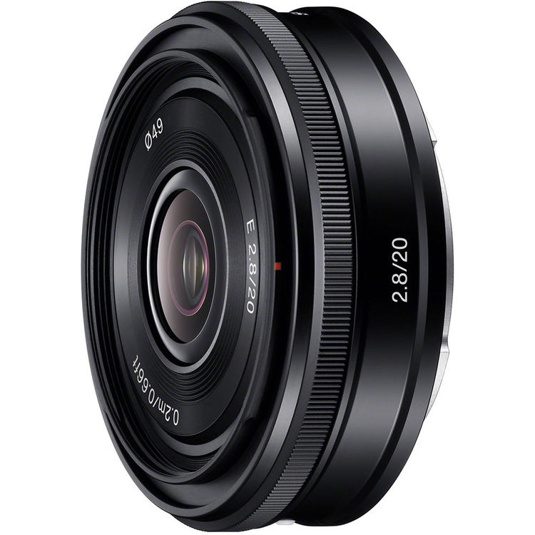 The 20mm f/2.8 Alpha E-mount Lens from Sony is a compact 20mm prime lens for the Sony NEX line of APS-C sized mirrorless cameras. Its 35mm focal length equivalent is 30mm which classifies it as a wide-angle lens with multiple applications. Its maximum aperture of f/2.8 is bright enough for low-light capture and shallow depth of field imaging and its optical design consists of three aspherical elements which correct distortions and aberrations and provide clear, high contrast, detailed images. A smooth, quiet internal stepping motor is used for both focus drive and aperture actuation and makes this lens ideal for shooting video. Less than an inch long and built with aluminum alloy, it is both compact and durable. Autofocus and Direct Manual Focus, which allows for precise manual focus even in AF mode, is supported for both photo and video.