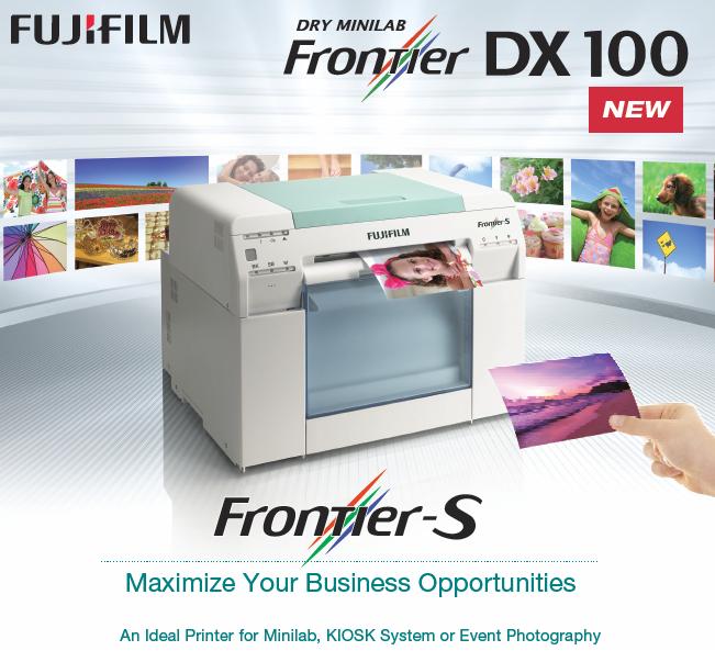 Compact and fast, the Frontier-S DX100 can produce prints from 3.5” x 5” up to 8 x 39” high quality images and allows for a wider color gamut, finer grain, smoother gradation in backgrounds and improved skin tones. The Frontier-S DX100 meets the diverse needs and challenges of the retail minilab, retail kiosk and Event photography.