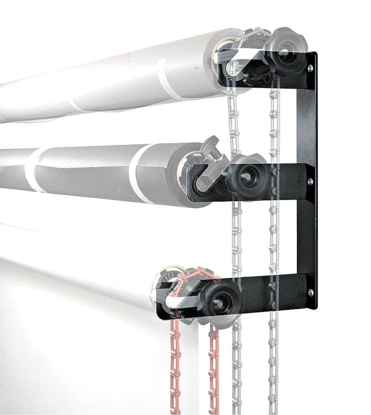 Ovaj zidni nosač pozadine sadrži 3 para expandera, 3 lanca,3 tega za lance i par nosača za zid.